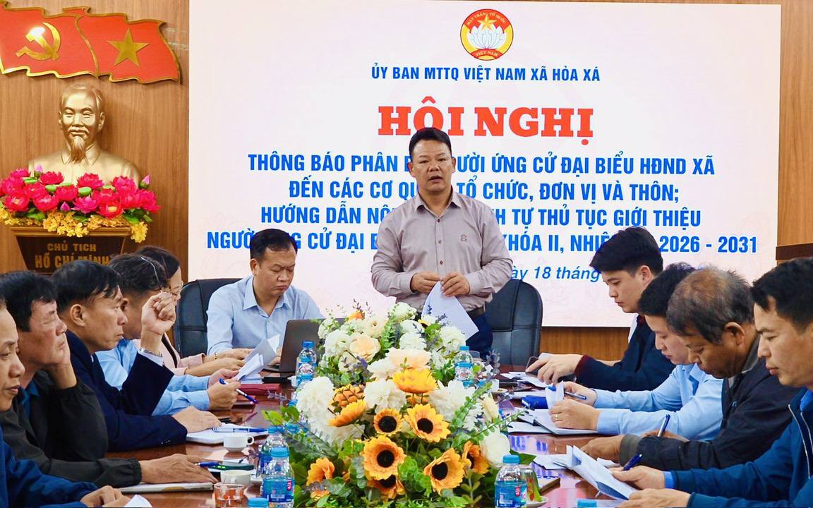 Kết luận hội nghị, Ban Thường trực Ủy ban MTTQ Việt Nam xã đề nghị các cơ quan, đơn vị, thôn, tổ chức liên quan nghiêm túc triển khai thực hiện việc giới thiệu người ứng cử theo đúng số lượng, cơ cấu, thành phần đã được thông báo, bảo đảm đúng quy trình, dân chủ, công khai, góp phần chuẩn bị tốt cho cuộc bầu cử đại biểu Hội đồng nhân dân xã Hòa Xá nhiệm kỳ 2026–2031./