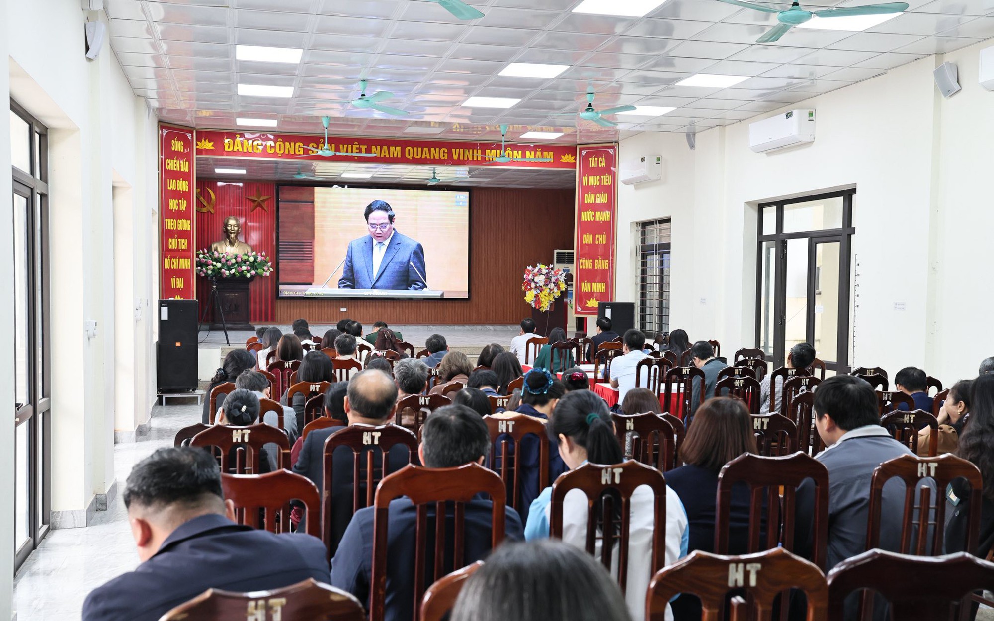 Các đại biểu dự Hội nghị trực tuyến tại điểm cầu xã Hoà Xá